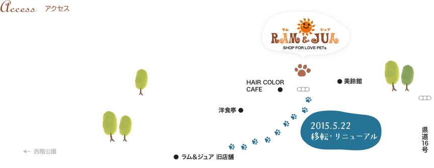 ペットが健康な毎日を過ごすために、ペットのためにできることをモットーに、たくさんの飼い主様に安心してご利用していただけるお店を作りたいと思ったのがきっかけで2007年4月5日RAM&JUAをオープンしました。店名の由来は、私の愛犬「ミニチュアダックスフンド」の名前です。